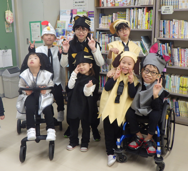 保護者の皆さんをはじめ、たくさんのお客様においでいただき、子ども達は張り切って演技していました。手話に親しむ全体自立活動で教えてもらったことも生かしながら、生き生きと体全体を使いながら役になりきることができました。